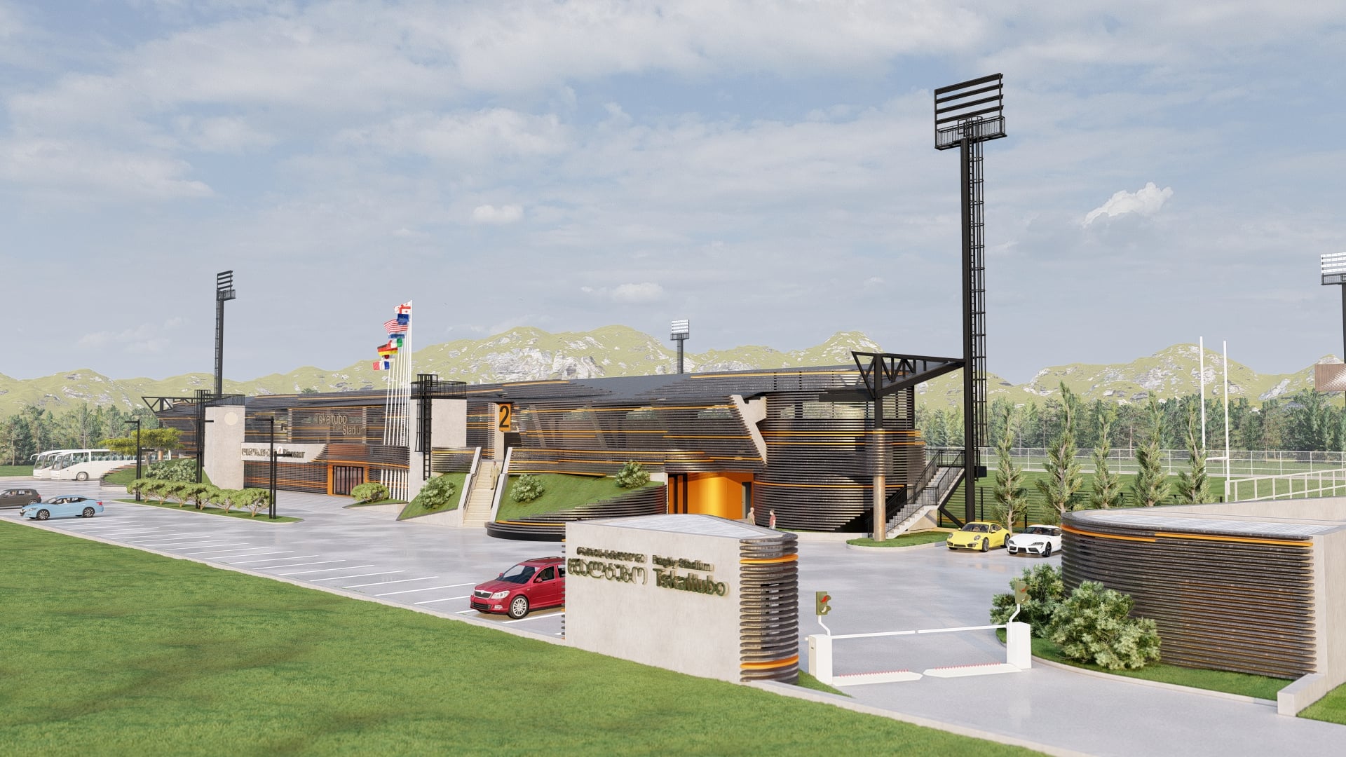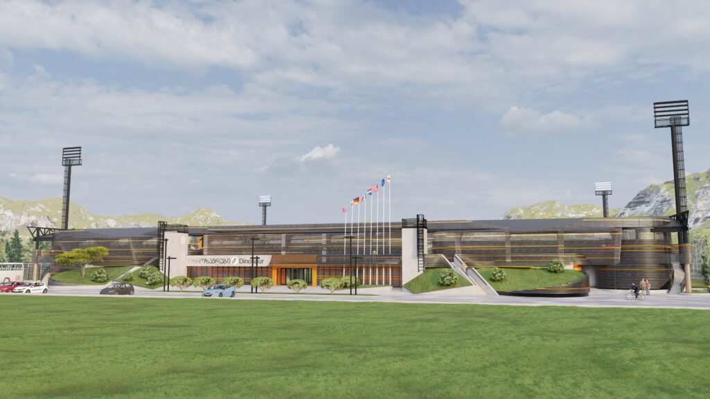 In the heart of Tskaltubo, against the backdrop of mountain ridges, unfolds a rugby stadium built to modern standards, a symbol of both strength and aesthetics. Its purpose goes beyond that of a mere sports arena — it is a space where daily displays of power and energy take place, and where architecture blends seamlessly with nature. The building’s bold yet harmonious forms express movement, dynamism, and the drive toward victory.