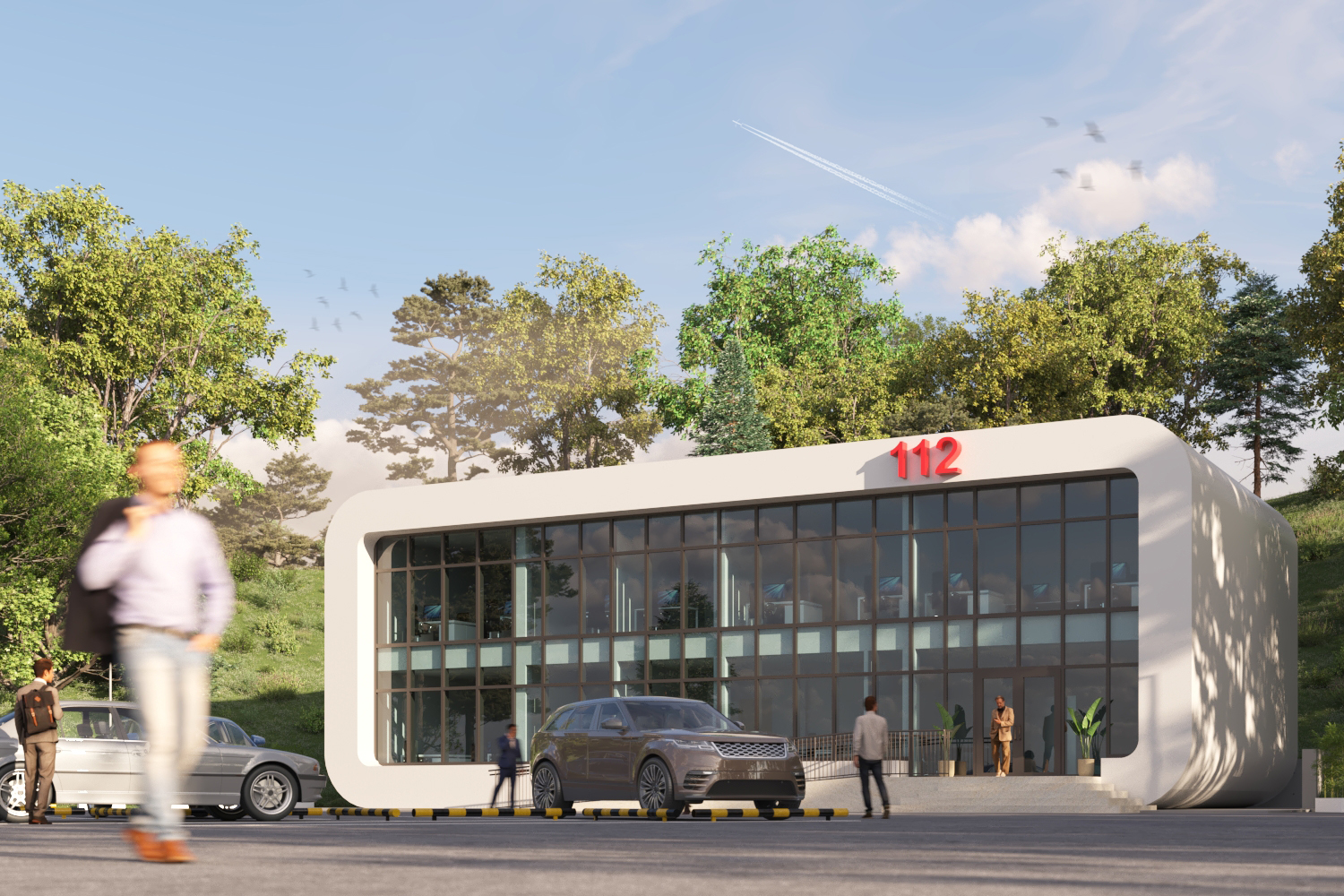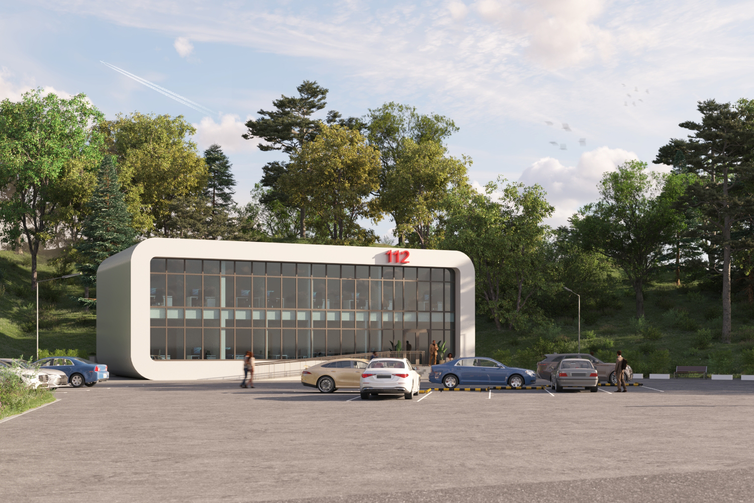112-ის არსებული შენობის მიმდებარედ, დამატებით იგეგმება ადმინისტრაციული ოფისის მშენებლობა. პროექტის თანახმად აშენდება 60 ადამიანზე გათვლილი ორსართულიანი შენობა. ადგილმდებარეობიდან გამომდინარე რელიეფის უმეტესი ნაწილი ქანობიან კლდოვან გრუნტს წარმოადგენს, მიწის ნაკვეთის გარკვეული ნაწილი კი მოქცეულია არსებული პარკინგის მცირე მონაკვეთზე. არქიტექტურული გეგმარების პროცესში ჩვენთვის მთავარი ამოცანა არსებული საპარკინგე სივრცის მაქსიმალურად შენარჩუნება იყო, რაც ვერტიკალური გეგმარებით ამოვხსენით. კერძოდ, ჩატარდა მიწის სამუშაოები და გამონთავისუფლდა შენობის განთავსების არეალი. ჩრდილოეთით მოეწყობა მცირე კედელი, რომელიც შეაკავებს მიწის მასების შესაძლო ჩამოშლას და ამავე დროს, სწორ ტრაექტორიას მისცემს გრუნტის წყლებსა და მოსულ ნალექებს.